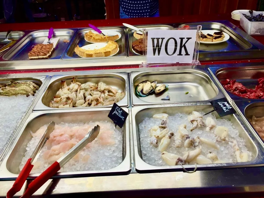 Vous y découvrirez une large gamme de produits frais : wok, asiatique, fruits de mer… Embarquez pour un voyage gastronomique dans une atmosphère de détente et de convivialité grâce à une nourriture fraîche à volonté.