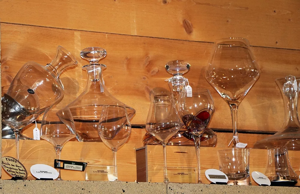 – Une sélection de verrerie (verres à vin, à bière, à spiritueux, flûtes à Champagne et carafes)